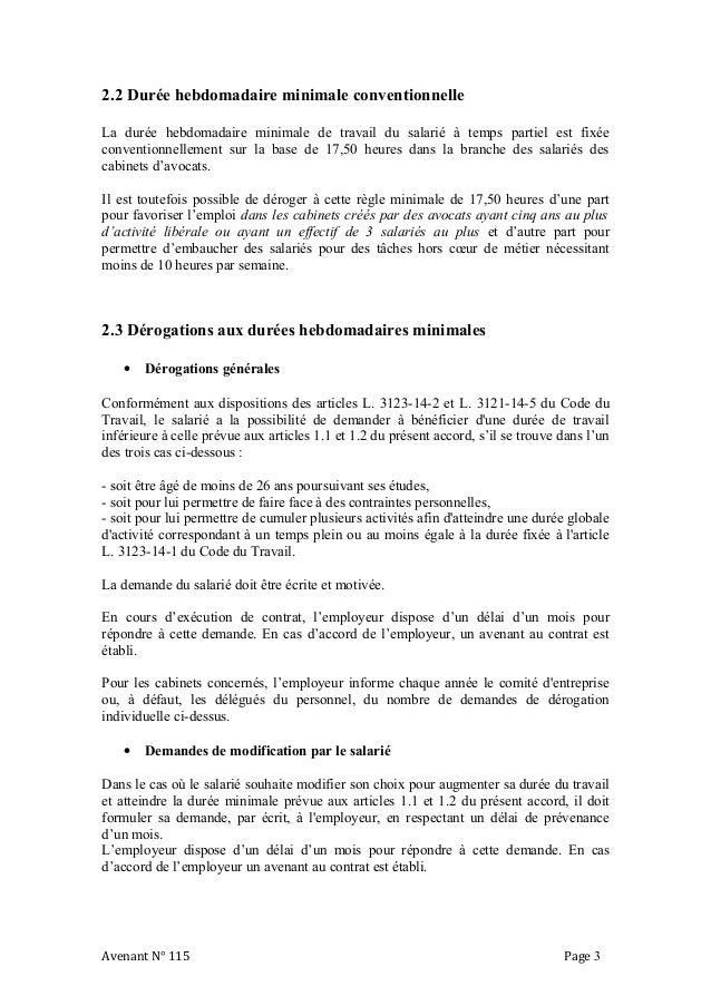 3123 6 du code du travail. Le contrat peut toutefois prévoir que la durée de travail journalière et hebdomadaire effective du salarié à temps partiel excède de plus de 20 la durée de travail journalière et hebdomadaire normale fixée au contrat de travail. Avant toute chose le salarié doit savoir que le. Lavenant au contrat de travail doit indiquer la durée hebdomadaire ou mensuelle de travail choisie par le salarié minimum 16 heures ainsi que la répartition de ce temps de travail au sein de la semaine. 3123 6 durée minimale de travail et heures complémentaires art. Un avenant au contrat de travail compte tenu du passage à temps partiel lentreprise doit rédiger un avenant au contrat de travail qui précisera.