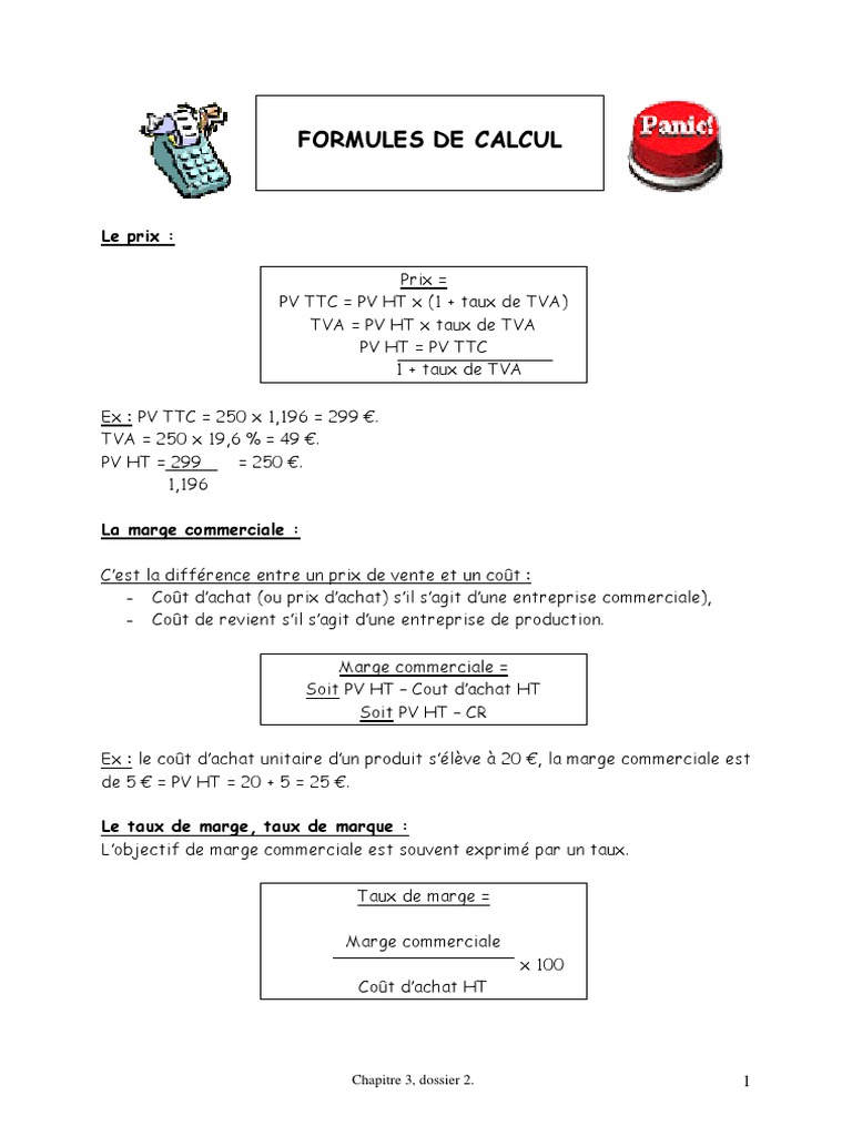 Une marge correspond à la différence entre un prix de vente et un prix dachatlorsque lentreprise est redevable de la tva le calcul de la marge seffectue hors taxes. Dans le domaine du commerce le taux de marge exprimé en pourcentage est calculé par la formule. Ce calcul est à adapter en fonction du type de votre activité. Marge prix dachat ht x 100 avec marge pv ht pa ht lorsquil nest pas précisé le taux de marge est donc un taux de marge brute quon appelle également. Un produit est acheté 40 euros pour être revendu à 65 euros. Le calcul du taux de marge est le suivant.