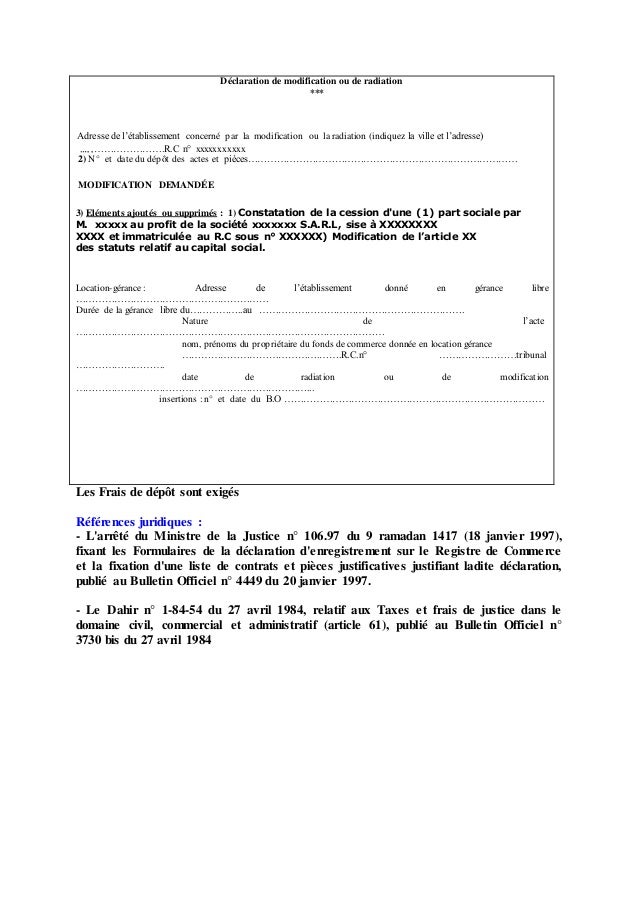 Cession de parts sociales. La cession de parts sociales dune sarl concerne uniquement les parts correspondant à un apport en capital libéré par lassocié. La procédure dagrément commence tout dabord par la notification du projet de cession par lassocié cédant à la collectivité des autres associés. Les cessions de parts de sarl sont en principe libres entre associés mais. Ce document est un acte de cession de parts sociales permettant à un vendeur le cédant de formaliser les modalités suivant lesquelles il entend céder à un acheteur le cessionnaire les droits sociaux quil détient au capital dune société dont le capital est divisé en parts sociales. Lenregistrement porte sur lacte de cession de parts sociales et est effectué auprès de la recette des impôts du lieu du domicile du cessionnaire ou de celui du cédant. Transmission de parts sociales.