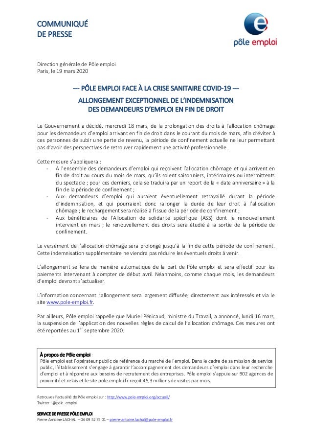 Chomage fin de droit. Un décret du ministère du travail publié ce mercredi 15 avril acte la prolongation de lindemnisation des chômeurs en fin de droit jusquà la fin du confinement. Les personnes de 50 à 62 ans bénéficient dune indemnisation sur 3 ans dès lors quils ont été salariés plus de 3 ans. Le montant de cette prime de fin de droit au chômage est égal à 27 fois le montant fixe de lare soit 32535 euros. Retrouvez la liste des différents dispositifs accessibles ainsi que quelques conseils si vos droits pôle emploi arrivent à leur terme. Pendant la crise sanitaire les demandeurs demploi arrivant en fin de droits bénéficient dune prolongation de leur durée dindemnisation par pôle emploi. Le nouveau règlement général de lassurance chômage résulte du décret n 2019 797 du 26 juillet 2019 et sapplique aux salariés dont le contrat de travail a pris fin le 1ᵉʳ novembre 2019.