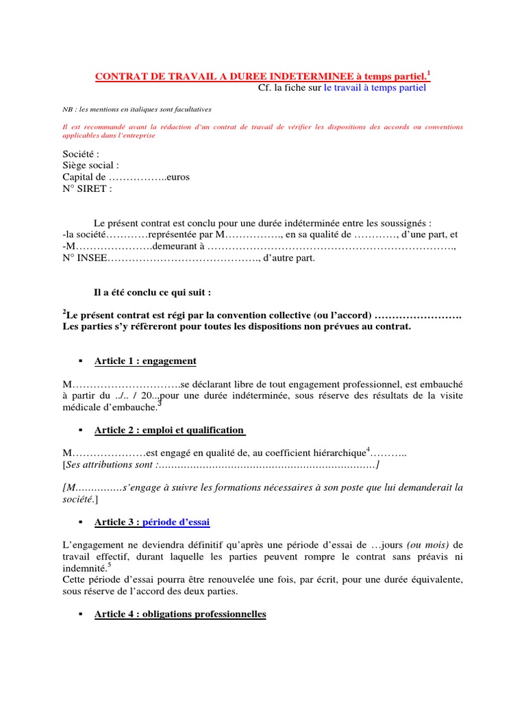 Contrat temps partiel. 3123 1 passage à temps partiel ou à temps complet art. En principe la modification dun contrat de travail à temps partiel est soumise aux mêmes règles que celles applicables à la modification du contrat de travail à temps plein. Le contrat peut toutefois prévoir que la durée de travail journalière et hebdomadaire effective du salarié à temps partiel excède de plus de 20 la durée de travail journalière et hebdomadaire normale fixée au contrat de travail. On peut ainsi distinguer le contrat de travail à temps plein du contrat de travail conclu pour un travail à temps partiel. 3123 5 contrat de travail art. Un contrat à temps partiel que ce soit un cdi ou un cdd doit obligatoirement prévoir une durée de travail inférieure à celle dun salarié en contrat à temps plein.