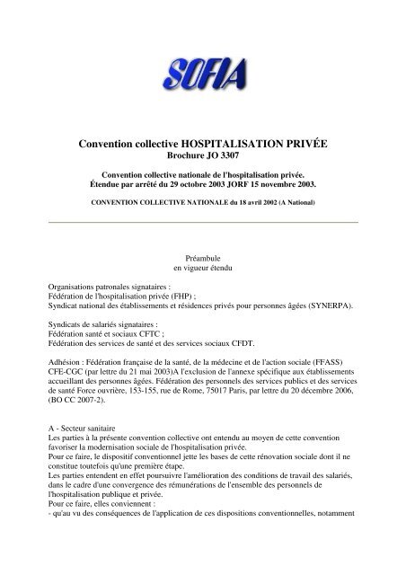 Convention collective du 18 avril 2002. Il sagit de la version intégrale et à jour de la convention collective nationale de lhospitalisation privée du 18 avril 2002. Jo du 15 novembre numéro didentifiant idcc. Télécharger pdf convention collective nationale de lhospitalisation privée du 18 avril 2002 textes attachés télécharger rtf accord du 26 février 2001 relatif au financement du paritarisme dans lhospitalisation privée le secteur social et médico social à caractère commercial. Convention collective du 18 avril 2002. Si vous recherchez un emploi dinfirmier vous pouvez aussi consulter notre. 3307 a jour au 1er avril 2010 164 boulevard du montparnasse 75014 paris.