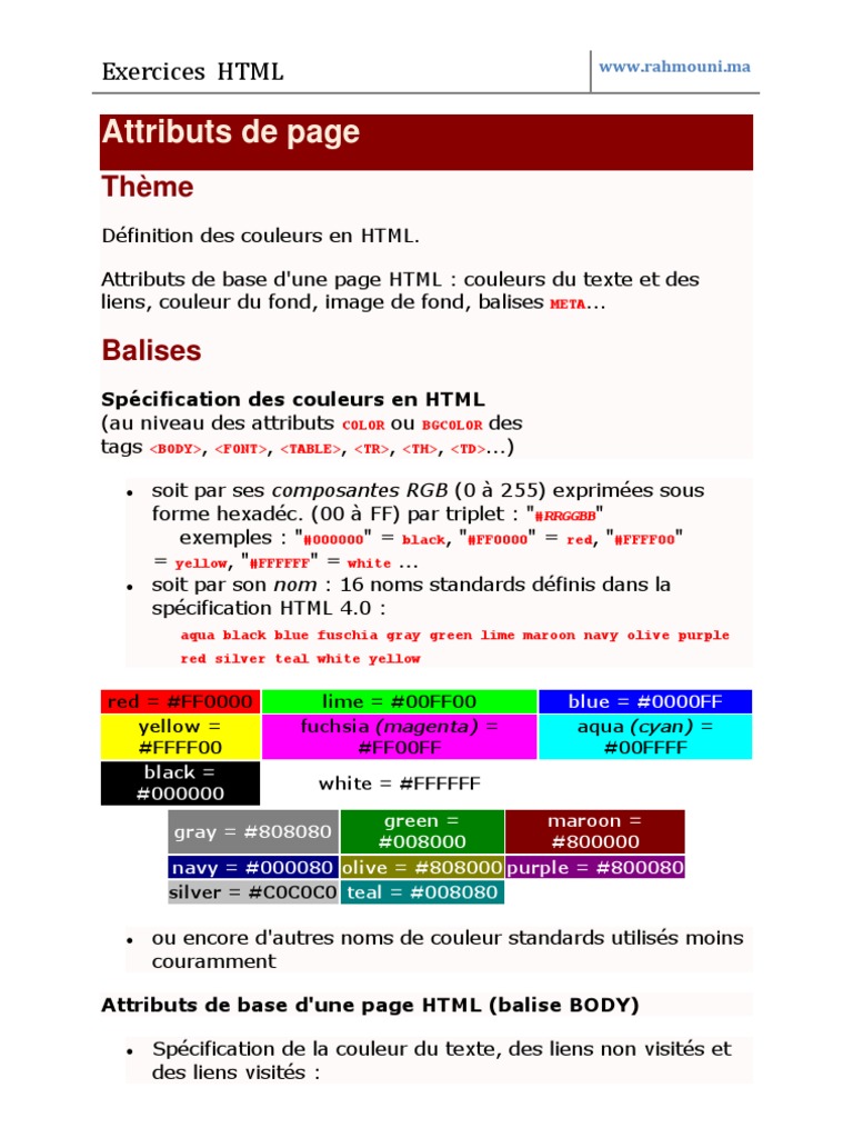 Le langage html permet dagrémenter la présentation du document dun arrière plan background coloré ou composé dune image. Les codes des couleurs hex les noms des couleurs html et les valeurs rvb. Chaque couleur en html est identifiée par un code de 6 lettres et chif. Déterminez la couleur darrière plan. Par ailleurs notez quil est considéré comme une bonne pratique de toujours déclarer une couleur de fond avec la propriété background color en plus dune ou de plusieurs images de fond au cas où celles ci ne pourraient pas safficher. Le code hexadécimal est utilisé pour désigner les composants rvb dune couleur en notation hexadécimale de base 16.