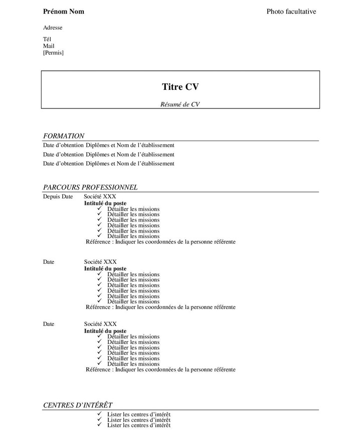 Même sils ne sont pas obligatoires les hobbies ou centres dintérêts sont souvent présents sur les cv. à défaut de pratique susceptible de vous démarquer ne trichez pas. Par exemple que tu fais du bénévolat dans une association daide au devoirs que tu es membre dune équipe de foot depuis 3 ans ou que tu fais de la guitare dans un groupe. Dans un cv détudiant qui a peu dexpérience professionnelle un ou deux stages à faire valoir par exemple les centres dintérêt peuvent être un plus non négligeable.