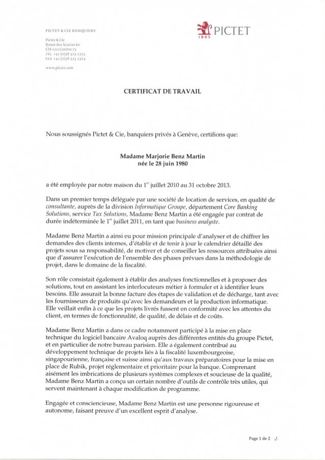 Exemple de certificat de travail. La rédaction dun certificat de travail est une obligation légale de lentreprise envers le collaborateurcelui ci consiste en une synthèse structurée la plus objective possible de lactivité professionnelle du collaborateur tant au niveau du contenu des tâches réalisées que du comportement observéau cours dune période donnée. On trouvera ci après un exemple de certificat de travail intermédiaire qui doit être pris pour ce quil est ie. Ce modèle permet de personnaliser un certificat de travail. Identité et poste de la personne au sein de lentreprise. Le certificat de travail est un document devant être remis au salarié au terme de son contrat de travail contenant les informations essentielles du contrat de travail exécuté. Ce document doit être remis au salarié par lemployeur à la date du dernier jour du contrat.