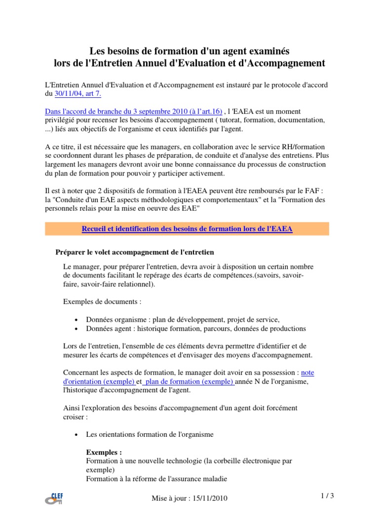 Le calendrier de mise en service établi par lentrepreneur indiquera de manière détaillée la mise en oeuvre de la formation la durée de chaque cours de formation les formateurs les participants etc. Depuis fin 2015 le cdg 88 propose un nouvel outil informatique daide à la conception des fiches de postes et à la mise en œuvre des entretiens professionnels.