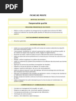 Autres modèles de documents excel conçus par wikicréa. Modèle de fiche de poste pour un emploi existant ou pour une création voici une proposition de modèle type. Ce modèle doit servir de trame unique à lentreprise. Service auquel le poste est rattaché et son positionnement. Déterminez quelles informations sont essentielles pour le bon fonctionnement de votre entreprise et insérez les dans votre fiche de poste. Au sein dune entreprise ou dune administration la fiche de poste est un outil de communication interne des ressources humaines issu de la démarche qualité qui a pour finalité de clarifier les missions et les activités relatives à un poste de travail.