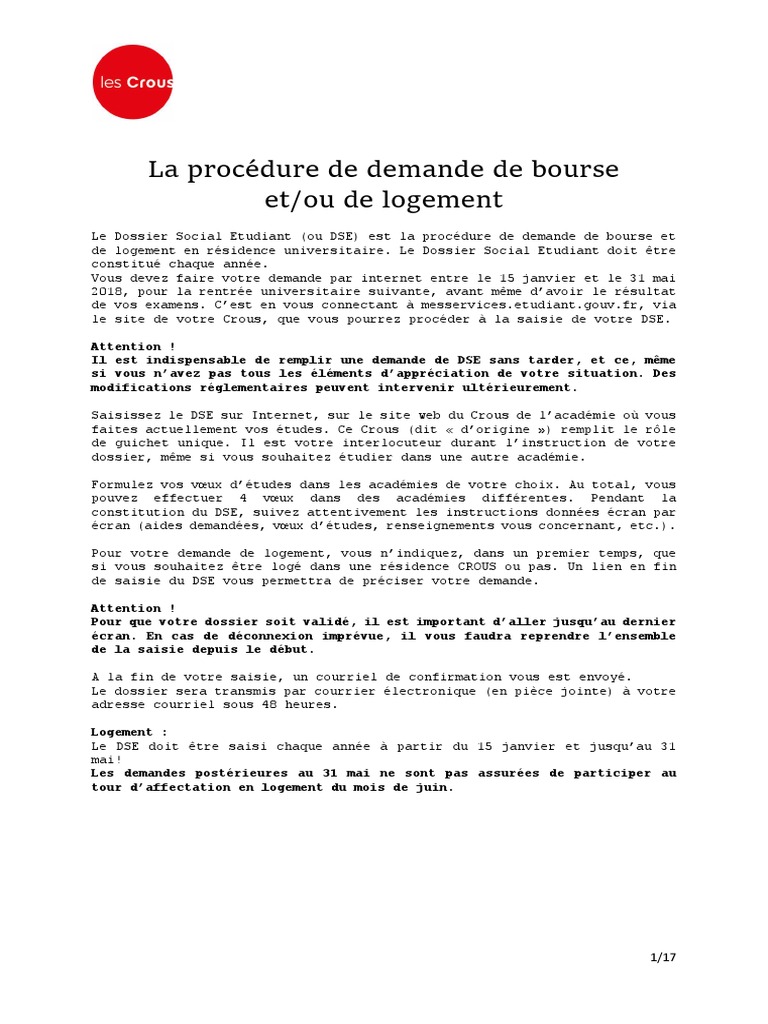 Pour préparer votre dossier dse et faire votre demande de bourse sur critères sociaux bcs vous devez préparer des documents. Avant de valider votre demande vous devrez payer des frais de dossier et joindre votre rib relevé didentité bancaire pour recevoir votre bourse. Vous pouvez par exemple constituer votre dossier de bourse ou de demande daide au logement dossier dse. Frais de dossier. Le crous met également à votre disposition un simulateur de bourse pour connaître. Environ 7 euros par paiement en ligne ou chèque à lordre de lagent comptable du crous.