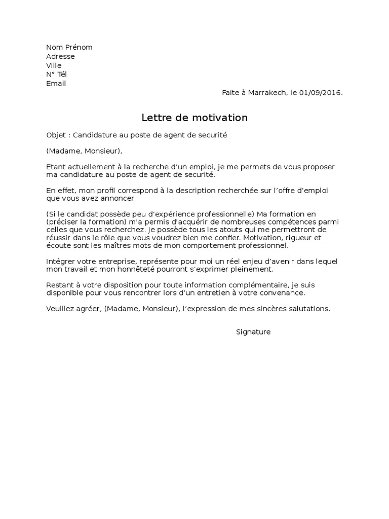 Lettre De Motivation Commercial Au Format Word