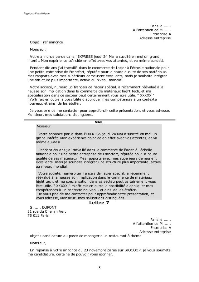 Accueil je soumets ma candidature. Monsieur madame actuellement en deuxième année à luniversité de x je vous soumets ma ca 1 antworten.