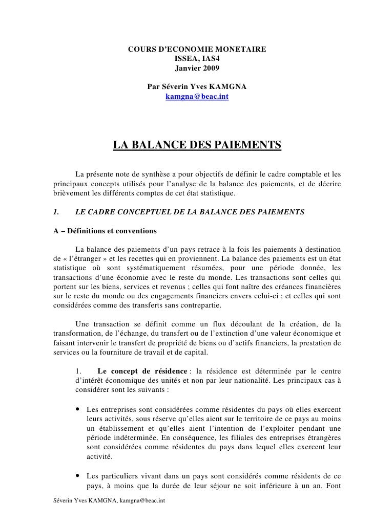 La balance des paiements. La balance des paiements est un état statistique qui retrace sous une forme comptable lensemble des flux dactifs réels financiers et monétaires entres les résidents dune économie et les non résidents au cours dune période déterminée. Laccès aux publications et chiffres. La balance des paiements est un document de la comptabilité nationale qui recense pour une période donnée lensemble des transactions économiques internationales commerciales financières et monétaires que les résidents dun pays les particuliers les entreprises ou létat ont réalisées avec ceux du reste du monde. La balance des paiements est publiée mensuellement puis révisée trimestriellement avant de faire lobjet dun rapport annuel de la banque de france. De la balance des paiements de la position extérieure globale. La balance des paiements étant toujours présentée en équilibre il faut lanalyser poste par poste.