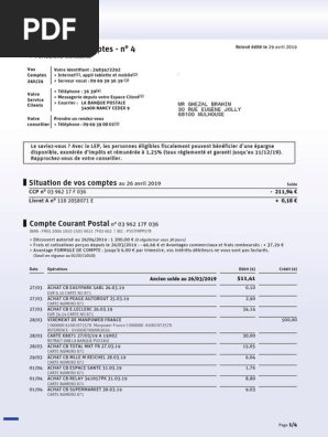 Pour lépargnant ce changement de nom ne modifie pas les caractéristiques principales du placement. En effetla banque postale semble avoir adhérer au fond de garantie mais partiellement selon un employé dune banque concurente. La banque au sein de laquelle vous détenez votre ldd peut vous fournir une carte bancaire pour effectuer des retraits sur votre ldd mais vous ne pourrez vous en servir quaux distributeurs de son réseau. Cela signifie que vous êtes en droit de clôturer votre livret a à la banque postale à tout moment quand vous le désirez et gratuitement. En savoir plus de faux e mails sms et des appels téléphoniques vous demandant vos coordonnées personnelles et informations bancaires identifiants codes daccès à vos comptes en ligne ou codes reçus par sms peuvent vous être adressés par des personnes mal intentionnées au nom de la banque postale. 05 dintérêt à compter du 1er février 2020.