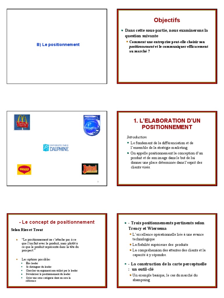 Cette perception est déterminée par des éléments tangibles et des critères plus subjectifs. Le positionnement est un choix stratégique qui cherche à donner à une offre une position crédible attractive et différente au sein dune marché et dans.