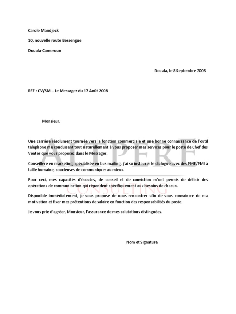 Nom x x x x adresse numéro. Votre lettre de motivation doit mentionner votre parcours détudes et vos projets davenir. Elles renforcent ainsi leur service marketing.