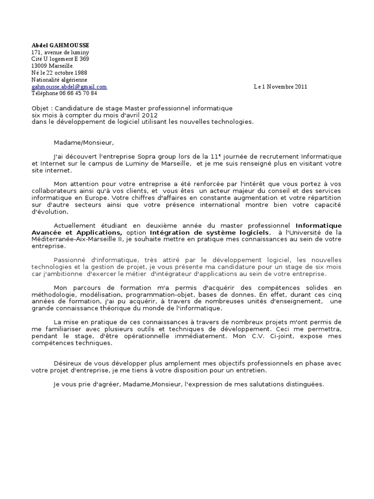 Lettre de motivation master informatique. Il y en a plusieurs types de entreprise cartes accessible pour votre entreprise désire et il est très important déterminer quel type vous correspond le mieux vous et votre entreprise. Pour des métiers pointus comme ceux de linformatique il est préférable daxer son courrier de candidature sur ses connaissances et ses compétences techniques en ciblant les plus pertinentes en fonction des besoins de lentreprise ou de loffre demploi. Lélève passe par exemple trois semaines en entreprise puis une semaine dans son établissement. A votre ville date. Exemple de lettre de motivation pour un master pour postuler à un m1m2 voici un modèle de lettre de motivation afin de compléter votre dossier dinscription. Comment écrire une lettre de motivation pour un emploi dinformaticien.