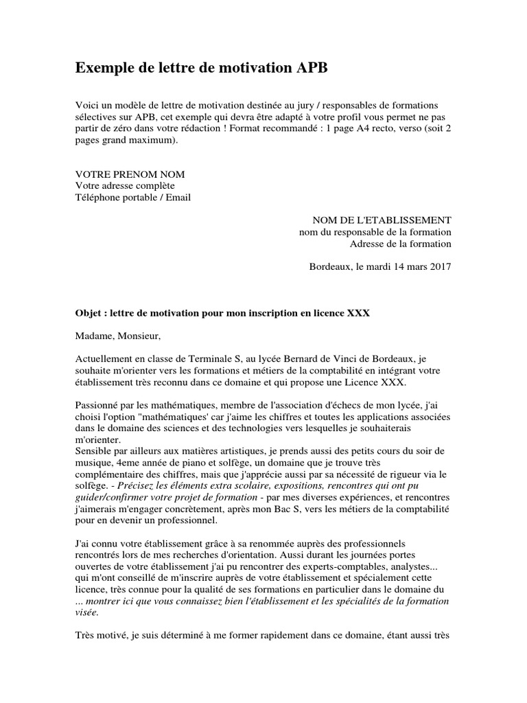 Ou toute autre formation. De nombreuses raisons peuvent pousser un élève pour demander un changement décole. Baladur13 messages postés 38569 date d. Pour un master un bts une licence. Mon fils de 15 ans doit faire une lettre de motivation pour être accepté dans un internat. Une option non disponible des problèmes personnels un.
