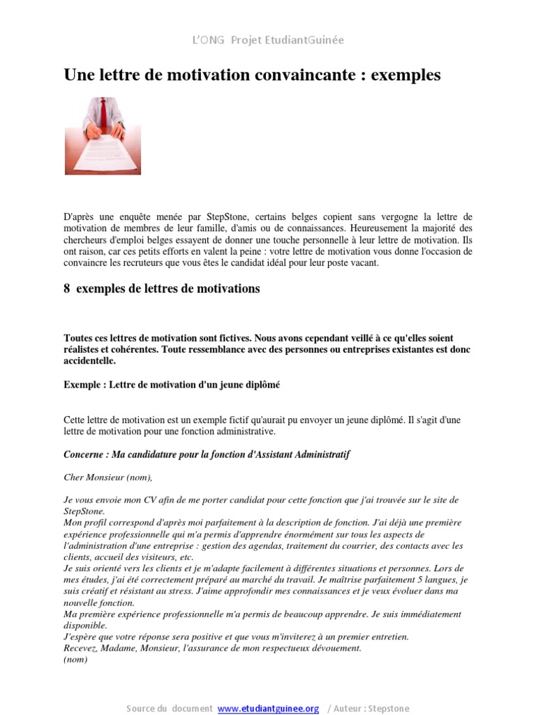 Téléchargez cet exemple de lettre de motivation pour le poste de assistante administrative. Organisé et méthodique je témoigne déjà dune solide expérience dans le domaine.