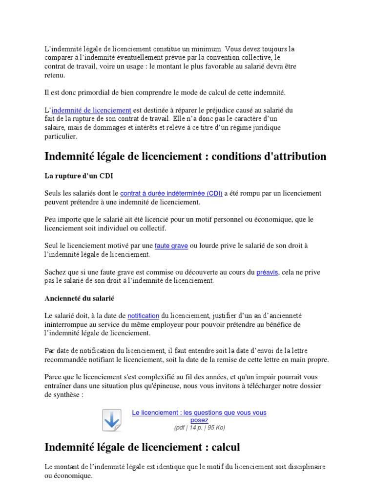 Si la chance est avec vous. Pour le calcul de lindemnité de licenciement il faut retenir le salaire brut et non le salaire net. Avec les anciennes modalités de calcul lindemnité aurait été de 1 500.