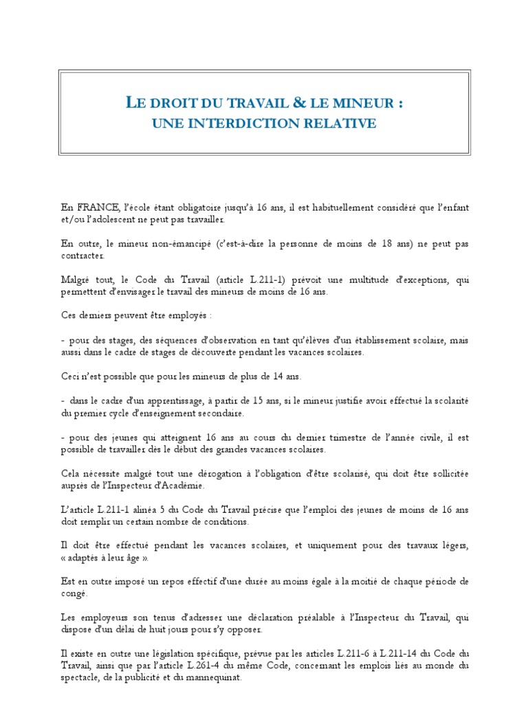 Peut être avez vous pu déjà vous rendre compte quaccéder à un job lorsquon est mineur est difficile. Il nest donc soumis à aucune autorité parentale et peut passer un contrat de travail sans besoin dautorisation.