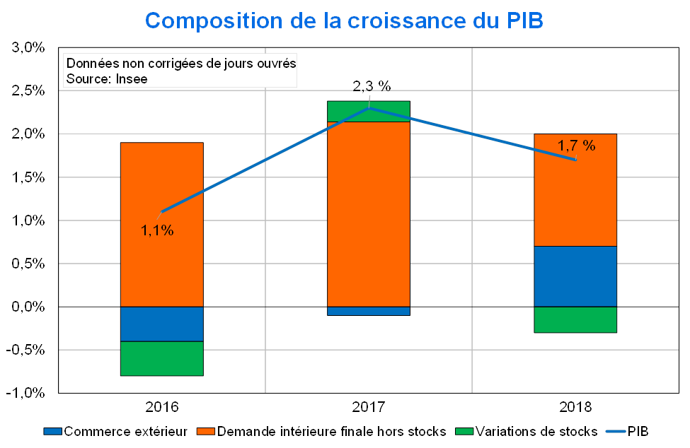 Pib de la france. La croissance du pib au deuxième trimestre 2019 ralentit un peu par rapport au premier trimestre 2019 02 contre 03. Dans les prévisions davril 2019 du fmi le pib de lhexagone est en effet attendu en baisse de 05. Le pib de la france en 2018 connaît une hausse estimée autour de 16. Cette année léconomie française a gagné une place au classement mondial des puissances économiques en ravissant la quatrième place du podium au royaume uni. France pib dernier précédent le plus élevé le plus bas unité. La france entre en récession en 2009 son pib se contractant de 29.