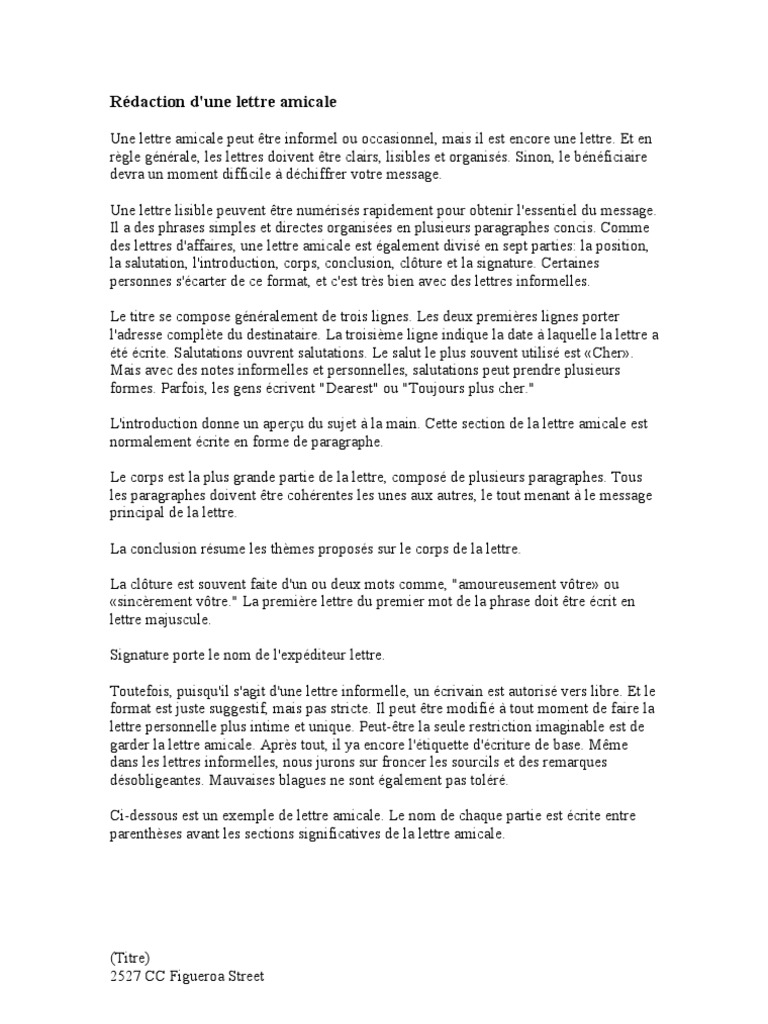 R daction d une lettre. Le nom du lieu est suivi dune virgule et de la mention de la date. Dans le cadre dun débat sur le renforcement des capacité démocratique dans mon pays dorigine jai décidé de contribuer au débat. Commencez par prendre une feuille de brouillon pour noter vos idées. Il est donc primordial dy passer du temps. Les mentions hors texte les formules dappel les formules de politesse et de salutation. Nous allons aborder ici les principes de base qui peuvent sappliquer à toutes les correspondances.