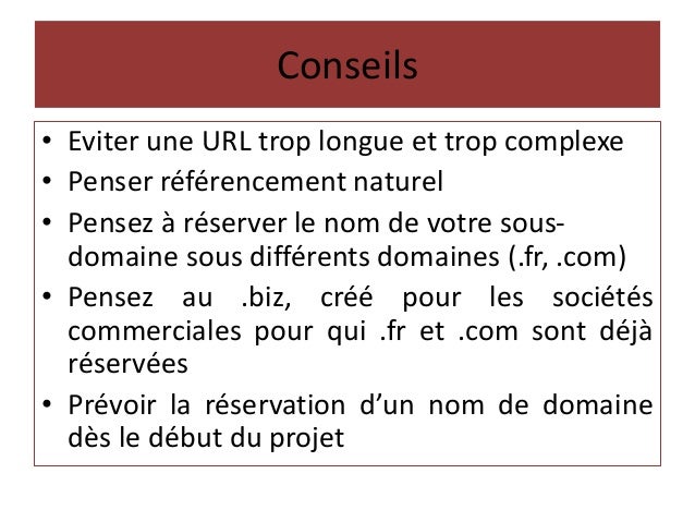 Certains caractères spéciaux pourraient ne pas être acceptés par les protocoles de messagerie. Pensez également à son utilisation en tant quadresse e mail. Il est possible de réserver un nom de domaine sans forcément lutiliser mais simplement pour se protéger afin de ne pas se faire usurper son identité ou celle de son entreprise produit. Lun des problèmes que vous pouvez rencontrer lorsque vous tentez de réserver un nom de domaine est que votre association de tld et sld soit déjà prise. Créer un site internet. Pour réserver un nom de domaine il faut sadresser à lorganisme gestionnaire qui en a la charge.