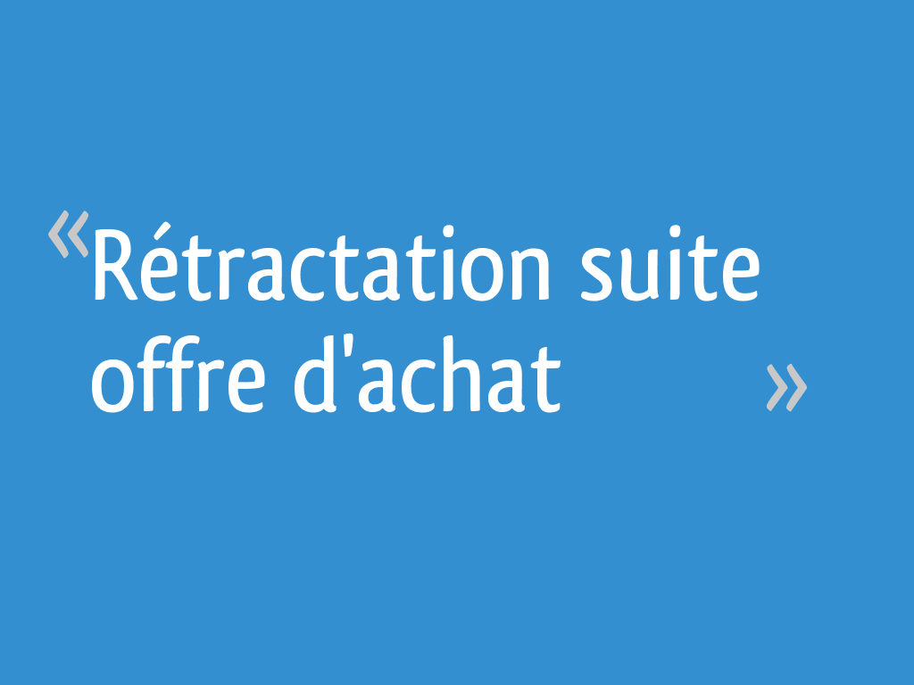 R tractation offre d achat. Le candidat acquéreur qui fait une offre dachat ne doit verser aucune somme dargent au. La rétractation de lacheteur après lacceptation de loffre dachat est possible sous certaines conditions. Loffre dachat ne doit en aucun cas saccompagner du versement dune somme dargent sous peine de nullité de lacte. Il ne peut donc pas lui remettre de chèque pour bloquer laffaire. Offre et rétractation. Or cette offre dachat écrite nest pas sans risques en terme dengagements.